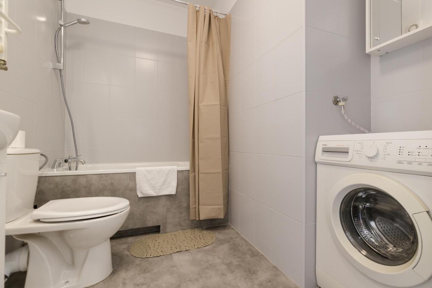 W apartamencie zapewniono sypialnię (1), kuchnię z lodówką i mikrofalówką, a także łazienkę (1) z prysznicem, bezpłatnym zestawem kosmetyków oraz pralką. W apartamencie zapewniono ręczniki i pościel.